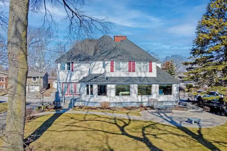 Lakefront Luxury Estate Home set in Port Colborne’s historic and exclusive Tennessee Avenue neighbourhood. Beautifully preserved & thoughtfully updated this century home sits on a 500′ deep lot that stretches right into Gravelly Bay on Lake Erie. With a commanding 3,300 sq. ft., 4 bedrooms & 2.5 baths this home has a prominent turret feature adding both a dramatic architectural detail and a hint of storybook appeal that creates a unique curved alcove in the living room. This showpiece space also boasts wall-to-wall lakefront windows, a warm gas fireplace, and perfect setting for a grand piano. The main floor has a formal dining room with garden doors opening onto a lakeside deck, a bright kitchen with crisp white cabinetry & built-in appliances. There is an adjoining breakfast nook & a library with board and batten detailing & quiet reading nook.The expansive primary suite offers a refined escape with a front-row seat to lake views through wide, light-filled windows. This serene space features a gas fireplace, a private spa-inspired ensuite with clawfoot soaker tub and a step-in closet. Additionally, there are 3 large bedrooms with ample closet space & a convenient laundry closet on this level. Timeless detailing and craftsmanship shine throughout with original wood floors, classic oak staircase and spacious centre hall. Outdoors, the estate unfolds into a true waterfront haven with mature trees, stone patios overlooking the water, tiered gardens, and a shoreline retreat with a double-size boathouse, beach area, and tranquil waters for launching kayaks and paddle boards.This property includes a full, unfinished basement, a double garage, & a driveway that leads down to the the shoreline. A bonus feature of this home is the dual HVAC system, offering individualized climate control for each level. You’ll have peace of mind with city services & a whole-home generator. This property is the best of lakefront living- inside and out!
