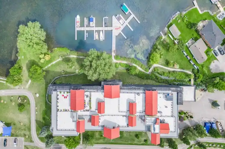 Barrie Condo Corner presents – Move in ready one bedroom condo with RARE OWNED BOAT SLIP. Enjoy the elegance of waterfront living nestled on the serene shores of Lake Couchiching. The Elgin Bay Club in Orillia is the premiere residential condominium in Simcoe County. This is the lakeside lifestyle at its finest. This 1 bedroom, 1 bathroom gem boasts granite countertops, gleaming hardwood floors, tall baseboards and exquisite moulding, under the grace of 9 ft ceilings. Revel in the abundant natural light, amplifying a bright & spacious ambiance. This open concept unit features a gorgeous living area with a gas fireplace to relax and unwind by after a long day. Step out onto your quaint balcony overlooking lush greenery, or entertain atop the rooftop terrace with breathtaking panoramic views of the water. The bedroom is a great size with an oversized closet and a separate walkout to a private patio. Included in the unit for your added convenience is a large laundry room with extra storage. Exclusive amenities include a party room, a private waterfront and heated underground parking. This unit also comes with a rare owned dock (only 25 units in this building) perfect for you to pull your boat right up to while getting to enjoy time outdoors on the water amidst the picturesque setting. For the days you don’t want to take your boat out, also included is complimentary kayak storage. The location cant be beat. It is a short walk to Orillia’s historic downtown district that features excellent restaurants, grocery, shopping, entertainment and more. It’s also right next door to the Royal Canadian Legion. For nature enthusiasts there is direct access to Millennium Trail for year-round hiking and exploring. Your tranquil retreat awaits. **EXTRAS** Refrigerator, Stove, Range, Dishwasher, Washer & Dryer. All window coverings, all attached light fixtures.