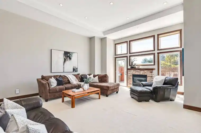 Four Season Adventures and Ski Hill Views Await! Discover the perfect blend of mountain tranquility and village convenience in this spacious 3 bed+loft townhouse offering one of the best locations. Walk to the hills or the village and experience great shopping, dining and entertainment. Perfect for mountain living, the home boasts an open-concept living area with a walk-out patio, granite countertops, and a gas fireplace. The master suite features a large ensuite and his/her’s closets, while the loft offers extra sleeping space or a kid’s playroom. There is an added bonus with a games room to enjoy a game of pool. Enjoy low-maintenance living with the Common Elements Fee including Lawn/Ground Maintenance, Snow Removal (Walkway & Steps), Garbage & Rogers Bulk Fee. This meticulously maintained property features new paint (2023), new roof (2023), AC (2022), washer/dryer (2021), and deck (2022). Move-in ready and perfect for mountain adventures! Ideal for families or those who love to entertain, this home offers plenty of space to relax and unwind after a day of skiing, hiking, or exploring the village. In the warmer months, enjoy barbeques on your private patio or soak up the sun by the pool at the nearby Heritage Center (membership optional). Also included in the membership are tennis courts, and a games room.