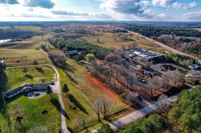 Detached 2- Storey house on 7.128 acres, less than 1 hour drive escape from Toronto. Estate homes in the area. An oasis of tranquility and peace. Or use it as a farm or even as a contractor’s yard. The existing house has 3 bedrooms and 3 bathrooms. It features a big interlocking patio, some new windows, a new bathroom, new shed (all in 2018). The property features a large barn (in as is condition) with water service and electricity. Electrical light fixtures, propane tank, washer, dryer, fridge and stove. All appliances in as is condition.