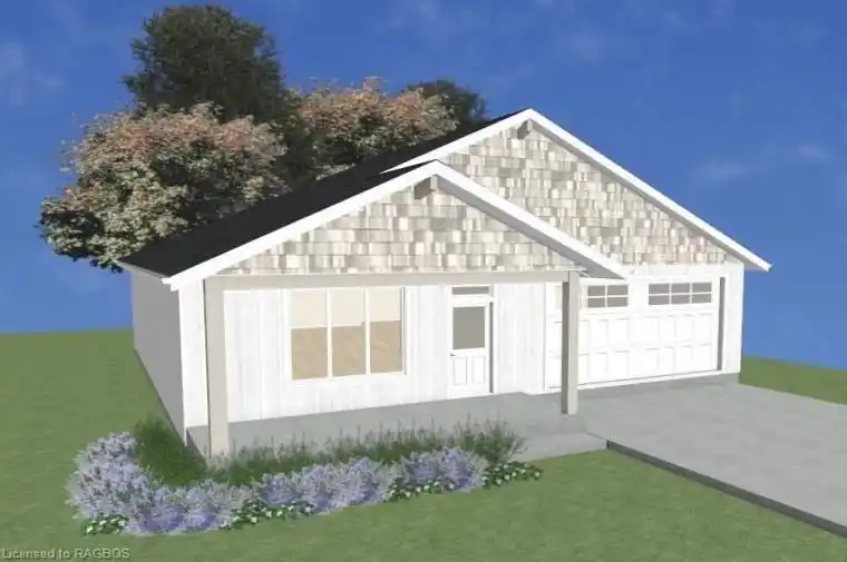 Discover the perfect custom bungalow just three blocks away from the beach in Southampton, ON! This net zero certified home offers two spacious bedrooms with main bath and an en suite as well as an open concept living/kitchen/dining room with stunning vaulted ceilings! You have the option to finish the basement (extra cost) if more space is needed. The home features a charming covered front porch and is located on a quiet cul-de-sac. The lot is uniquely situated across from a quiet and private water treatment plant, ensuring no neighbors across the road. Trees and a trail will be added in front for a pleasant view. Dennison Homes Inc., a reputable local custom builder, could start Spring 2026. With their own Interior Design Team, amazing Carpenters and a Custom Cabinet Shop they can make all of your dreams come true! Don’t miss out on this opportunity to build your dream home in a fantastic location!