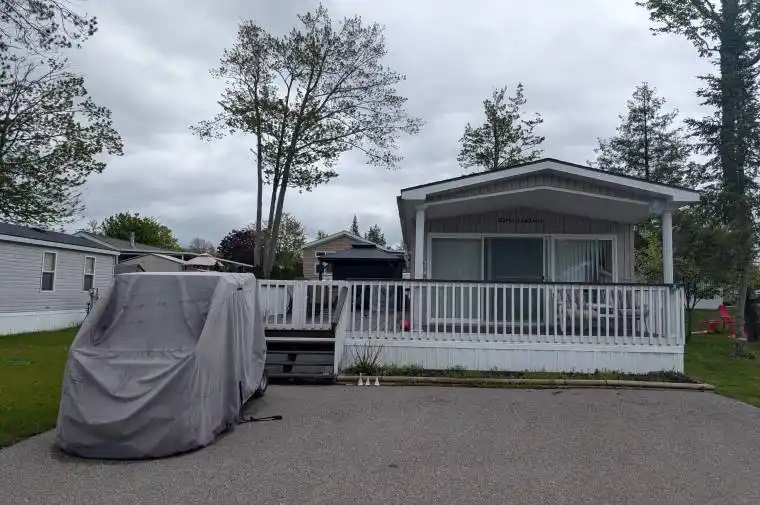 Escape to your ideal summer retreat at Wasaga Countrylife Resort with this pristine 2007 Northlander Cottager Classic front porch model where comfort meets convenience. Available seasonally from April 25 to November 16, this fully furnished 1-bedroom, 1-bathroom cottage is tucked away on a quiet street, just a short stroll from the sandy beaches of Georgian Bay. Inside, the bright open-concept layout boasts vaulted ceilings, modern appliances, and abundant cabinetry, creating a perfect space for both relaxing and entertaining. The spacious primary bedroom features a cozy queen-size bed and generous closet space. Step outside to enjoy an oversized deck with a covered front porch, a low-maintenance yard complete with a firepit, and a storage shed. The cottage sits on a fully engineered concrete pad with clean, dry storage beneath and includes a paved driveway. This turnkey unit is move-in ready and located within a vibrant, family-friendly resort community offering outstanding amenities: five inground pools, a splash pad, clubhouse, tennis court, playgrounds, mini-golf, gated security, and direct access to the beach. Seasonal site fees for 2025 are $6,420 plus HST. Don’t miss this opportunity to make unforgettable summer memories. schedule your showing today!
