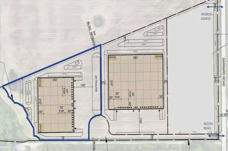 Design-build purchase opportunity in prime Whitby location. +/- 78,000 SF proposed freestanding building with the opportunity to customize to suit. Pending site plan approval. Access to variety of amenities & large labour pool. 25 trailer parking stalls. 130′ shipping court depth, 52’x50′ bay sizing & 60′ staging bay. Heavy power available. LEED & Zero Carbon certification available.