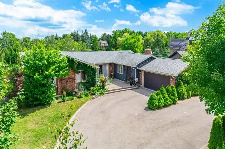 An Exclusive Retreat in the Prestigious Carrying Place Golf Course Community – Poised on a majestic 2-acre ravine lot within the coveted Carrying Place Golf Course enclave, this exceptional bungalow offers the rare combination of refined elegance, natural beauty, and ultimate privacy. A stately courtyard entrance sets the tone for the sophisticated interior, where an open-concept design and expansive picture windows create a seamless connection to the surrounding landscape. The main floor showcases a grand primary suite with dual walk-in closets and his & hers ensuites, a second bedroom, and a private office ideal for quiet productivity. The heart of the home is a designer chefs kitchen, thoughtfully appointed with a generous island, Gaggenau appliances, a Wolf range, and a Sub-Zero refrigerator crafted for both function and entertaining. A walk-out to an elevated deck invites you to dine al fresco or simply unwind while immersed in serene, wooded views. The walk-out lower level extends the living space with three additional bedrooms, three full baths, a full kitchen, and its own entrance perfect for multi-generational living or luxurious guest accommodations .Surrounded by mature trees and fruit-bearing gardens, this estate offers tranquility and prestige, all within a transitioning area of immense potential. Whether enjoyed as a private residence or reimagined as a custom build, this is an unparalleled opportunity in an exclusive golf course setting.