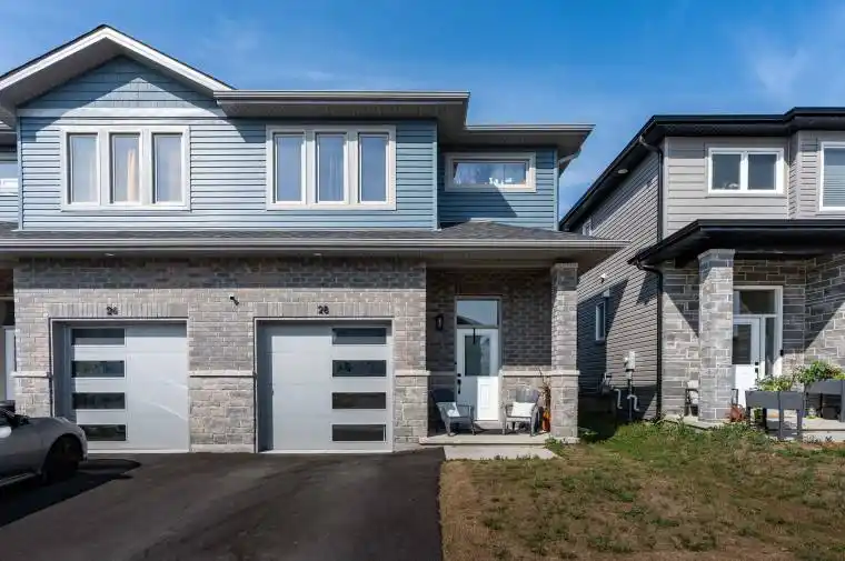 Welcome to this beautifully crafted semi-detached home offering a seamless blend of modern comfort, stylish finishes, and unbeatable location. Featuring 3 generously sized bedrooms, 2.5 bathrooms, and a single-car garage, this home is designed to fit your lifestyle. The bright and open-concept main floor showcases rich hardwood flooring, soaring 9-foot ceilings, and expansive windows that invite natural light into every corner. The upgraded kitchen is a standout, complete with quartz countertops and brand-new stainless-steel appliances, including a fridge, stove, and dishwasher, perfect for hosting or enjoying quiet family meals. Upstairs, the oak staircase leads you to a thoughtfully designed second level featuring a convenient laundry room with a full-size washer, dryer, and sink. The primary bedroom boasts a luxurious ensuite and a spacious walk-in closet, while the secondary bedrooms are ideal for kids, guests, or a home office. Step outside to a huge backyard, a rare find offering endless possibilities for relaxing, gardening, or entertaining. Additional features include central air conditioning, an oak staircase, and a fantastic layout filled with natural light. Located just minutes from Hwy 401 and Hwy 402, this home is only 1015 minutes from Queens University, St. Lawrence College, Royal Military College, Kingston General Hospital, downtown Kingston, Lake Ontario, and major shopping destinations like Costco, Walmart, and The Home Depot. You’re also within easy reach of Belleville in just 3540 minutes. Whether you’re upsizing, downsizing, or investing, this home is the perfect mix of quality, location, and value. Don’t miss your chance to own a piece of Kingston’s growing future!