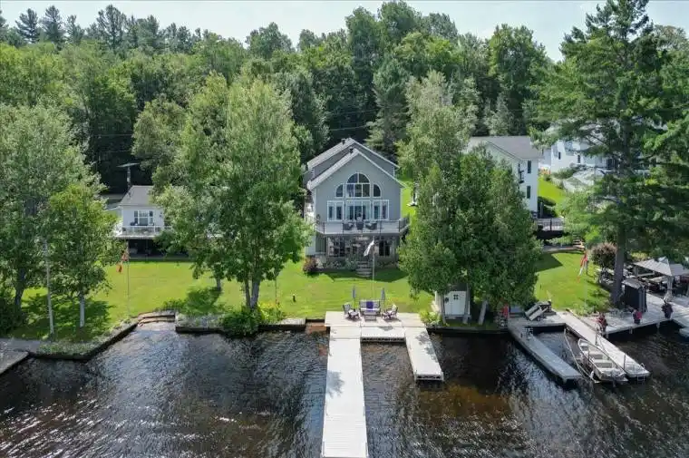 Welcome to 183 Fell Road, a luxury waterfront residence on beautiful Baptiste Lake. Located just minutes from Bancroft, with direct water access to Elephant and Benoir Lakes, the property offers miles of scenic boating and access to Algonquin Park. This meticulously maintained four-bedroom, four-bathroom home, on a year round municipally maintained road, combines upscale comfort with timeless design. The open-concept main level features a spacious living, dining area with soaring cathedral ceilings, floor to ceiling windows that capture the incredible lake views, and direct access to the expansive outdoor deck area. The large kitchen is perfect for family gatherings, with beautiful stainless steel appliances and elegant finishes; off the kitchen is a mud/laundry room, a perfect place to drop everything cottage, family and pets. The main floor also features a beautiful private primary suite, complete with dual closets and a luxurious 4-piece ensuite bathroom. Upstairs, an open to below loft area serves as an office/den, while a large bedroom with 3-pc ensuite offers a quite and private retreat. A fully finished walk-out basement with 2 additional bedroom, 4 pc bath, rec room and utility room, offers additional living space and includes a full-width walk out sunroom, ideal for year-round enjoyment with stunning lake views. The property includes a 1-car garage with a cozy rear patio. This home, with quality furnishings and tasteful décor throughout, is offered turn-key. The layout is ideal for hosting family and friends, with ample space and privacy. Excellent swimming, boating, and fishing are just steps from your door. Continually updated and upgraded over the years, this property is the perfect blend of comfort, function, and waterfront lifestyle. Whether you seek a permanent residence, executive retreat, or investment, this Baptiste Lake one of a kind luxurious property offers unmatched value and year-round appeal.