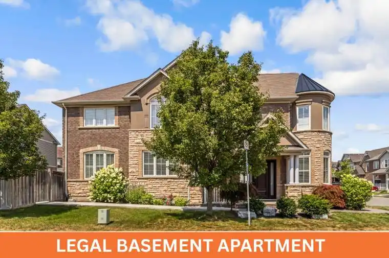 Immaculate & Exceptionally Well-Cared For Home with a 4 + 2-Bedroom Legal Walk-Up Basement Apartment, offering the perfect blend of style, functionality, and income potential. This is the highly sought-after Mattamy WoodLily Corner Model, known for its spacious design and abundance of natural light. The elegant stone and stucco elevation enhances its curb appeal, making a beautiful first impression the moment you arrive. The front of the home features a professionally hardscaped yard with a welcoming porchan inviting spot to enjoy your morning coffee. As you enter, youre greeted by a sunken foyer that adds character and dimension to the space. The thoughtfully designed main floor layout includes a private den or home office, perfect for remote work or study. The separate living room is bright and airy, showcasing pot lights and large windows that flood the room with sunshine. The separate dining room, also framed by expansive windows, provides an elegant setting for formal gatherings and holiday meals. A spacious family room offers the ideal place to relax. The heart of the home is the brand-new, custom-designed modern eat-in kitchen. Its been tastefully upgraded with pot lights, stone countertops, a stylish backsplash, and premium stainless steel appliances. The kitchen seamlessly connects to the breakfast area. Upstairs, the primary bedroom retreat boasts a generous walk-in closet and a luxurious 5-piece ensuite with a soaker tub and separate shower. The remaining three bedrooms are all bright and spacious. 2nd Level Laundry can potentially be converted to full bath. The legal 2-bedroom walk-up basement apartment is an exceptional bonus, complete with a private entrance, vinyl flooring throughout, a functional open-concept layout. Outside, the backyard features partial interlocking, providing the perfect setting for BBQs, outdoor dining, and quality time with family and friends. Close to all major amenities. 10 mins drive to Go Station.