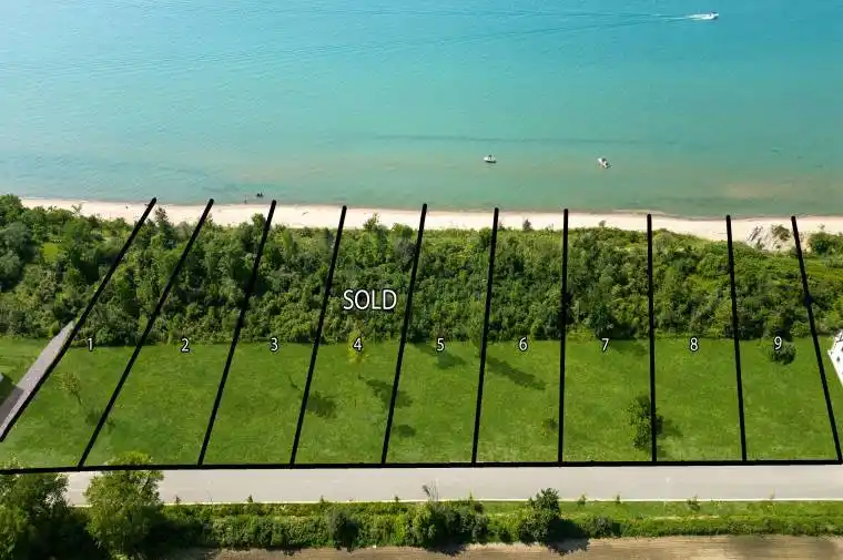 LAKEFRONT LOT! ISNT IT TIME TO MOVE TO A UNIQUE, UPSCALE EXCLUSIVE COMMUNITY & ENJOY WORLD CLASS SUNRISES/ SUNSETS, LAKE BREEZES, SOUNDS OF THE SURF & STROLL THE MANY MILES OF BLUE COAST SHORELINE, OR JUST ENJOY THE BOATING ACTIVITY FROM THE TOP OF THE BLUFF, DAY IN & DAY OUT? THERE ARE ONLY 30 LOTS IN THIS NEW DEVELOPMENT WITH 50% SOLD FEATURING OVERSIZED LOTS RANGING FROM 67-99 FRONTAGES WITH MATURE TREES & NO BACKYARD NEIGHBOURS. EACH HOME OWNER SHALL HAVE 1/30TH OWNERSHIP IN 500 LINEAR FEET OF LAKEFRONT WITH APPROX 3 ACRES OF LAKEFRONT PARK, FEATURING A GENTLE NATURE TRAIL THROUGH UNTOUCHED WILDERNESS. THERE ARE 10 LAKE LOTS, & 4 LOTS THAT FRONT ONTO COMMON, MATURE TREED LAKEFRONT PARKLAND, WHILE OTHER LOTS HAVE THEIR LOT LINE DOWN TO THE TOE OF THE BLUFF OR THE TOP OF THE BANK.