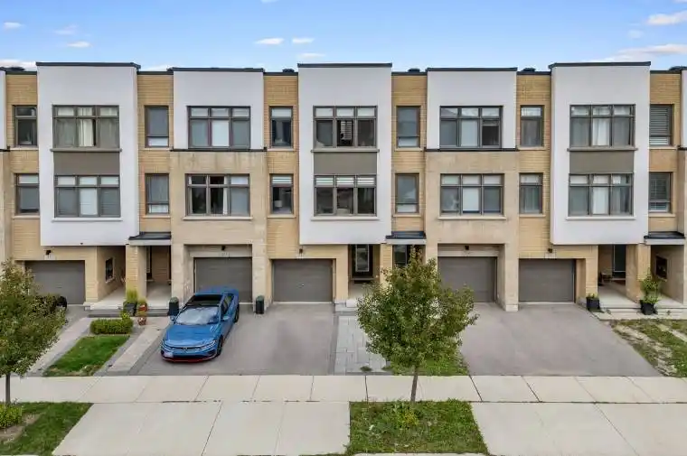 Welcome to this stylish and spacious Trafalgar Landing townhome in the heart of Oakville’s Uptown Core! Here you’re just a short walk to shopping, dining, services, and the new Trafalgar Transit Hub, with quick access to highways, the hospital, and the GO Station.This home offers 3 bedrooms plus a den and over 2,000 sq. ft. of well-designed living space, filled with natural light, 9-ft ceilings, and many thoughtful upgrades. The kitchen features a gas range, granite counters, dark wood cabinetry, and a walk-out to a private deck. You’11 love the generous great room for entertaining, the bright family room with walk-out to the backyard, and the private den that works perfectly as a home office or study.Upstairs, the primary suite comes with a 5-pc ensuite, a balcony, and custom upgraded wardrobes in the walk-in closet. Other details you’ll appreciate are the wide-plank laminate floors, oak staircase with iron pickets, inside garage entry, and the 2023 AC and furnace, still under a 10-year warranty.