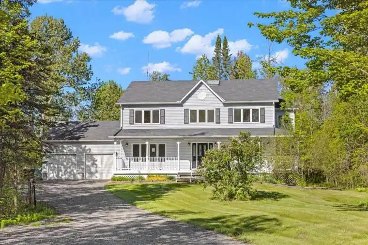 Looking for peace, privacy, and the charm of country living without sacrificing convenience? This beautiful 4-bedroom, 4-bathroom home is nestled on an expansive 4+ acre treed lot with no rear neighbours, offering the perfect blend of space, nature, and accessibility just minutes from town amenities and highway access. Set well back from the road on a gently elevated lot, the home boasts timeless curb appeal with a welcoming flagstone path leading to a spacious front porch ideal for quiet mornings or relaxing evenings. Inside, the main floor offers a classic and functional layout with formal living and dining rooms, a cozy family room with a wood-burning fireplace, and a bright eat-in kitchen designed for everyday comfort and entertaining. A main-floor den adds flexible space for a home office or hobby room. Upstairs, you’ll find four generously sized bedrooms, including a private primary suite. The fully finished lower level offers even more living space, featuring a spacious rec room, a den, a full bathroom, and plenty of storage, making it perfect for a growing family, guests, or multi-use needs. Step outside to your own private retreat an expansive, tree-lined backyard with a large deck ideal for summer gatherings, BBQs, or simply enjoying the peaceful natural surroundings. Mature trees and a sense of seclusion make this property feel like a true escape from the everyday. This rare offering combines the best of country living with easy access to city conveniences all set on a remarkable 4+ acre lot in a highly desirable estate community.