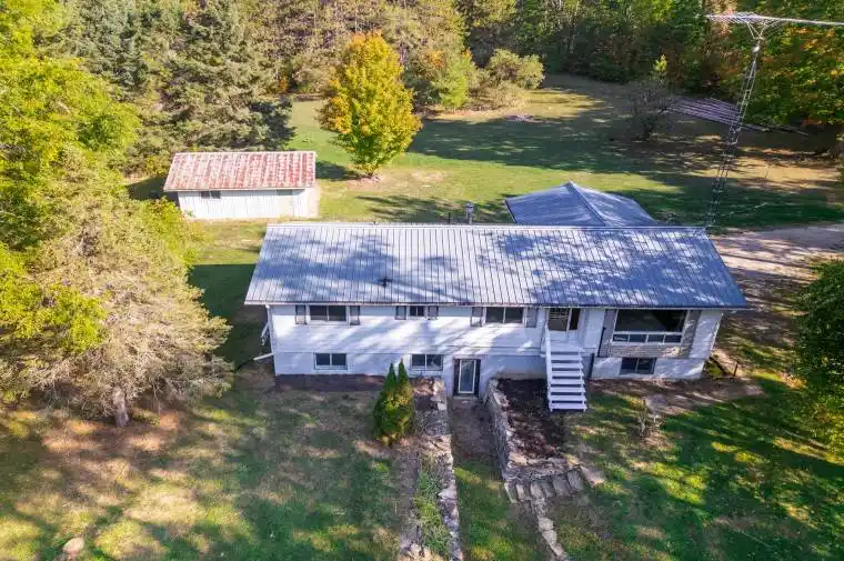 Welcome to 16 Sticky Lane a private 2.4-acre retreat located just minutes north of Coboconk on a quiet dead-end municipal road. Nestled among mature trees, this raised bungalow offers the perfect blend of privacy and convenience. The main level features 3 bedrooms, a full bath, and an open-concept kitchen, dining, and living area filled with natural light. The partially finished lower level includes a walkout entrance, small kitchenette, 3-piece bath, and plenty of potential for an in-law suite or additional living space. Enjoy year-round comfort with forced-air propane furnace from 2024, steel roof for easy maintenance. A detached double-car garage provides excellent storage and workspace. With plenty of room to roam outdoors and easy access to nearby trails, this property is ideal for those seeking country living with modern amenities close by.