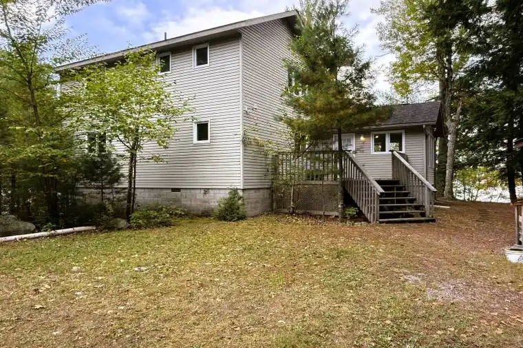 A one-of-a-kind opportunity on prestigious Redstone Lake. This 2.5-acre point property offers 550 ft of pristine southern exposure with water on three sides, combining sheltered bay living with sweeping big-lake views. Surrounded by the Canadian Shield, private trails, and mature pines, this is one of the most unique and private parcels on the lake. The meticulously maintained 3-bedroom, 2-bathroom home features cathedral pine ceilings over the family and dining rooms. The open-concept main floor is filled with natural light from south-facing windows and offers a walkout to the lakeside deck. A Muskoka room extends the living space, while the large kitchen includes a pantry, plenty of storage, and a wood-top bar with seating. The main floor hosts a spacious primary bedroom with his-and-hers closets and a large bathroom with oversized storage. Upstairs, find a loft-style bedroom, private office, and a large additional bedroom with its own balcony overlooking the lake. Updates include new windows (2016), a new electric furnace (2024), and extensive insulation for year-round comfort. The home has been lovingly cared for and is offered turnkey ready to enjoy immediately. Ideally located just 30 minutes from the village of Haliburton for shopping, dining, schools, and healthcare, and close to Haliburton Forest & Wildlife Reserve for outdoor adventure. Under 3 hours from the GTA, this property is the perfect escape while remaining accessible. Redstone Lake is known for its deep, clean waters, excellent boating, fishing, and swimming, with a vibrant community of year-round and seasonal residents. Rarely does a property of this size, privacy, and setting become available!
