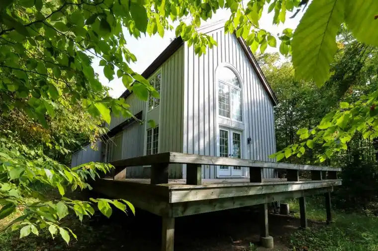 Lovely 5 bedroom chalet located on Devil’s Glen property. Excellent weekend getaway with lots of space to entertain friends and family. Nestled in the trees for complete privacy. Large windows and skylight allow the natural sunlight to flow through. The main floor consists of a kitchen, dining, 2 pc. bath and boasts a large open concept great room with high ceilings, a wood burning fireplace and a walkout to deck. The second floor has a large primary bedroom along with a 4 pc. bath. The completely finished basement has a sauna, 3 bedrooms with built-in bunkbeds, a recreation room, ski tuning room and plenty of storage. Close proximity to ski hills, cross country skiing and trails. Buyer must be a member of Devil’s Glen.