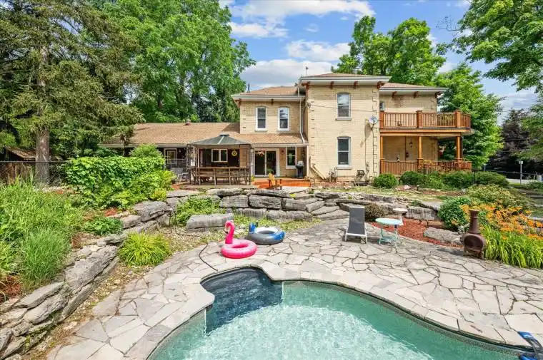 Some homes catch your eye, this one captures your heart. Welcome to 34 Field Road in historic Jerseyville. A stunning 1870s Victorian where timeless character meets modern comfort featuring 10 ceilings, crown moulding, natural wood trim, and original pine plank floors. This 3-bedroom, 2-bath beauty offers over 2,600 sq ft of living space with a bright country kitchen, breakfast bar and a private backyard oasis with a saltwater pool, waterfall, flagstone patio, and wraparound decks on two levels. Inside, enjoy elegant living with a dining room separated by original bi-fold doors (the dining space currently doubles as a cozy pub ), a versatile family room, and a spacious mudroom/office with main-floor laundry. Upstairs, there are 2 sets of stairs (cool) with a primary suite that is a true retreat complete with gas fireplace, sitting area, walk-in closet, and private balcony. Bonus: heated 2-car garage/workshop and parking for 7+. Book a showing to fully appreciate this 0.5 ac property ready to welcome its next owner.