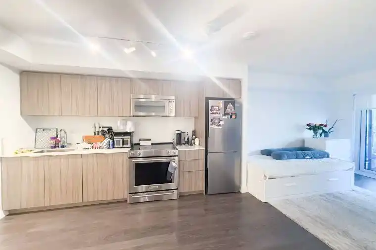 Welcome to The Kip District 2 Condos! This bright, open-concept unit features 1 bedroom, large den, a sleek bathroom and a spacious living area with premium finishes, stainless-steel appliances and vinyl flooring. The stylish kitchen boasts a functional layout perfect for dining or entertaining, white the private balcony offers a tranquil outdoor retreat. Ideally located steps from the Kipling Subway and Go Stations, HWY 7 and the Gardiner, as well as shopping and dining for easy accessibility. Experience luxury modern living with premium resort-style amenities for the ultimate condo lifestyle! Amenities include 24-hour Concierge, Gym, Fitness Centre, Loungers and Party Rooms, Guest Suites and Rooftop Terrace with BBQs and a stunning panoramic view of the city and waterfront.