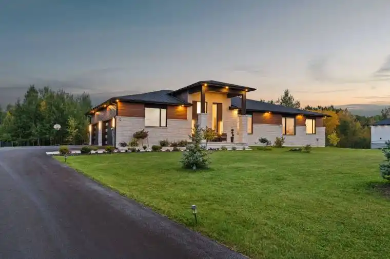 Step into a residence where timeless design meets modern sophistication. This fully finished luxury bungalow has been meticulously curated to offer a seamless blend of style, comfort & functionality. From the moment you enter, you’re welcomed into expansive, open-concept principal rooms with soaring 15′ & 10′ ceilings & floor-to-ceiling architectural black-framed windows, flooding the home with natural light and offering stunning exterior presence. A custom modern wall feature surrounds the main TV area, creating a striking built-in focal point. Two elegant gas fireplaces, one on each level add warmth and ambiance, perfect for both quiet evenings & lively gatherings. At the heart of the home is a show-stopping waterfall-edge quartz island with bar seating, seamlessly matched with a full-height quartz backsplash for a gallery-inspired look. Custom soft-close cabinetry & premium curated appliance suite blends beauty with professional performance. The main level boasts three spacious bedrooms, including a luxurious primary suite sanctuary with a freestanding spa-jet soaking tub, a glass-enclosed rain shower & a custom-designed walk-in closet. Downstairs, discover two additional large bedrooms, one currently styled as a private home office, perfect for guests, extended family, or staff. Each spa-inspired bathroom features floating vanities, quartz surfaces, rain showers & body jets, blending comfort and elegance. The fully finished lookout basement is an entertainers dream & includes a private gym, cinema/media room, games area, spacious lounge area, and ample storage. Outside you will find a custom pergola which adds both shade & architectural flair, 75-zone irrigation system, professionally landscaped grounds, a covered terrace for dining and entertaining & architectural exterior lighting. The 4-car garage boasts 12′ ceiling & features epoxy-coated flooring, built-in shelving & smart systems. This residence is a rare opportunity to own an exceptional property.