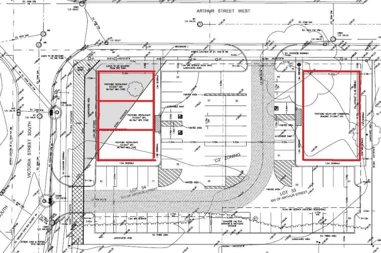 Prime new development commercial parcel available along Arthur St W/Highway 26 in the town of Thornbury. This site is ideally located between Collingwood, Meaford and Owen Sound. This high-exposure corner lot is directly across from major food and liquor retailers, and a gas station. Located just two blocks from Main Street Thornbury, the site is zoned for commercial retail development. This flexible new build opportunity is ideal for retail, service commercial or food uses looking to establish a presence in one of Southern Georgian Bay’s fastest-growing communities.