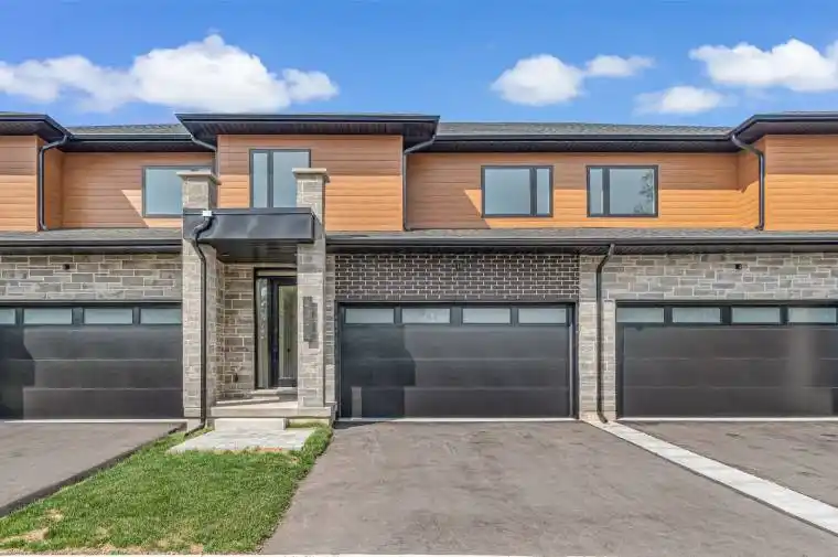 Brand-new executive town home never lived in! This stunning 1,747 sq. ft. home is situated in an exclusive enclave of just nine units, offering privacy and modern luxury. Its sleek West Coast-inspired exterior features a stylish blend of stone, brick, and aluminum faux wood. Enjoy the convenience of a double-car garage plus space for two additional vehicles in the driveway. Inside, 9-foot ceilings and engineered hardwood floors enhance the open-concept main floor, bathed in natural light from large windows and sliding glass doors leading to a private, fenced backyard perfect for entertaining. The designer kitchen is a chefs dream, boasting white shaker-style cabinets with extended uppers, quartz countertops, a stylish backsplash, stainless steel appliances, a large breakfast bar, and a separate pantry. Ideally located just minutes from the QEW, 407, and Burlington GO Station, with shopping, schools, parks, and golf courses nearby. A short drive to Lake Ontario adds to its appeal. Perfect for down sizers, busy executives, or families, this home offers low-maintenance living with a $296/month condo fee covering common area upkeep only, including grass cutting and street snow removal. Don’t miss this rare opportunity schedule your viewing today! Tarion Warranty!