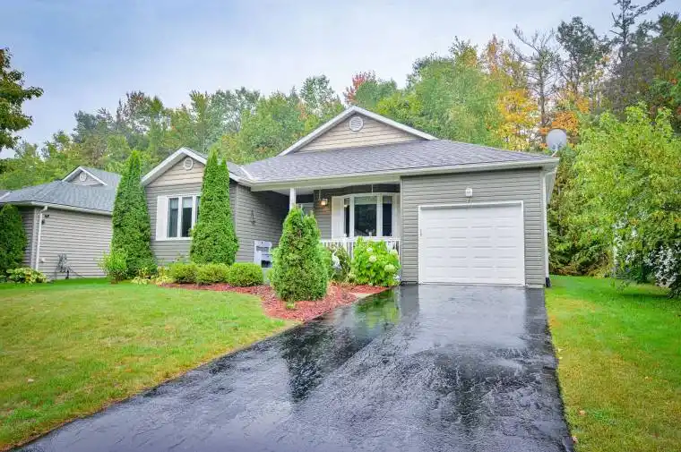This 1,207 sq. ft. bungalow offers comfortable, one-level living in a welcoming retirement community. The main floor features 2 bedrooms and 2 bathrooms, including a primary suite with a walk-in closet and 4-piece ensuite. You’ll also find granite countertops in the kitchen, the convenience of main floor laundry, and inside access to the attached single-car garage. Recent updates include a new furnace (2024) and a new garage door (2025).The bright living space flows easily to the backyard, while the full-height unfinished basement with a large rec area provides plenty of extra room for storage or future finishing. Located within walking distance to Gull Lake, downtown shops, restaurants, and amenities, this home combines comfort with convenience. Pineridge Association fees = $360/yr
