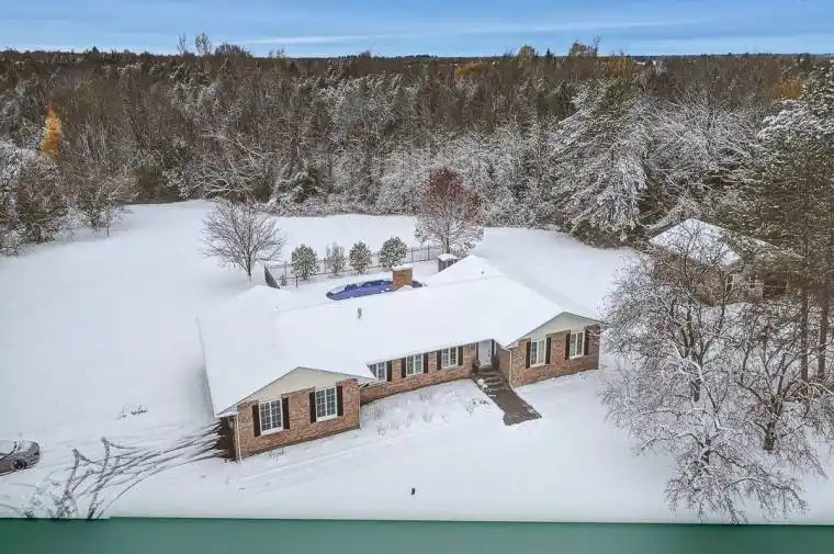 DREAM PROPERTY. SPECTACULAR. High quality STUNNING 2700sqft BUNGALOW on a MAJESTIC 1.7 ACRE treed estate lot in desirable RICHMOND boasting an additional DETACHED TRIPLE GARAGE / WORKSHOP!! PRIVACY & TRANQUILITY in a natural setting mere minutes to amenities. EXTENSIVELY RENOVATED and bursting w/ upgrades & designer finishes. IMPRESSIVE CRAFTSMANSHIP, superb style, open concept layout ideal for everyday living/hosting. FOUR BEDROOMS on MAIN FLOOR + potential for 2 more on lower. This beauty has it all: paved driveway, full brick exterior, in-ground pool, hardwood floors, custom millwork, natural slate flooring, GOURMET CHEF’S KITCHEN with stylish banquet eating area, formal living/dining rooms, mudroom, main floor laundry = ONE LEVEL LIVING! SPRAWLING 4 SEASON SUNROOM (currently used as dining). LAVISH PRINCIPAL RETREAT w. ensuite ABSOLUTELY FABULOUS. OVERSIZED WINDOWS = SUNNY/BRIGHT. Finished lower featuring a lounge, HOME THEATRE, gym (+ space for 5th bedrm/office), 2pc bathroom (w.space for expanding). RESORT STYLE exterior living at its finest: IN-GROUND POOL, fully landscaped, fenced, SPRAWLING DECK & more! 2 CAR ATTACHED GARAGE. BELL/ROGERS HIGHSPEED Available. JUST PERFECT. 200AMP Electrical, Roof 2021, Furnace 2021, Hot water tank 2023. A VERY RARE OPPORTUNITY.