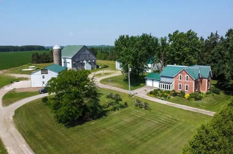 Your Perfect Country Property! This classic 1885 Ontario farm house has been nicely maintained over the years plus a rear addition was added to give this older home a more modern feel throughout. Situated on a recently severed, beautiful 5.3 acres in Centre Wellington, while being conveniently located on a quiet road between Arthur and Belwood. This appealing all brick, 6 bedroom home has enough room for the whole family with large principal rooms offering a true country feel, and the cedar sunroom off the dining area is an impressive feature, while the premium steel shake roof is sure an overall added benefit. The large 2 car attached garage features in-floor heating for your convenience. The property features beautiful large mature trees, perennial flowerbeds, extensive lawn areas, 2 driveway entrances, all this surrounded by productive agricultural lands. Here`s the bonus for those needing outbuildings – a huge 50’x100’workshop shed, with a portion insulated and heated, would be ideal for the handyman or contractor, the older 65’x77’bank barn is very solid throughout and a 40’x60’drive shed has lots of height and endless possibilities, and lastly an older cement silo awaits your creative ideas. These outbuildings are truly a rare find in today`s real estate market. Pride of ownership is evident on this great property, and a quick closing could be available for the next owners. This complete rural property must be seen to be appreciated. It`s prime location is within commuting distance to most major centres. Make the Move to the Country!