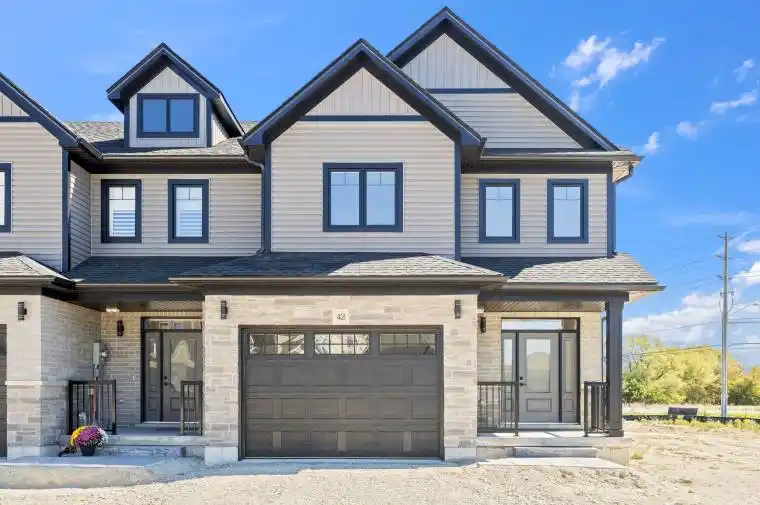Welcome to Poplar Trails – Where Luxury Meets Lifestyle! This brand-new, never-lived-in three-bedroom townhouse by award-winning builder, Sunvale Homes is thoughtfully designed with high-end finishes throughout. The main floor welcomes you with warm engineered hardwood that extends through most of the second level.The gourmet kitchen features quartz countertops, brand-new stainless steel appliances, a large corner layout in a warm greige, and a custom-painted dark island. The dining area is by the striking custom-stained oak staircase, while the living room, anchored by a cozy fireplace, offers a perfect space for both relaxing and entertaining. Upstairs, the layout balances comfort and privacy: two bedrooms share a stylish main bath, while the primary suite occupies its own wing on the other side of the home. This sanctuary includes a massive walk-in closet and spa-inspired 5-piece ensuite with a soaker tub, custom glass shower, and quartz countertops. Set on one of the largest lots in the community, this home is ideal for family living, entertaining, and enjoying everything Collingwood has to offer – scenic trails, parks, boutique shops, fine dining, ski hills, golf courses, and the stunning shores of Georgian Bay. Sod coming soon to the backyard. Full Tarion warranty provided. A very poplar model – The Meadow.