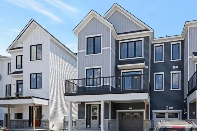 Welcome to 57 Lentago Ave a beautifully designed, recently built 3-bedroom, 4 washrooms, 3-storey end-unit townhome located in the sought-after family community of Half Moon Bay, Barrhaven. Offering a spacious and functional 1,848 sq. ft. layout, this home features elegant hardwood flooring on the second level, stylish tile finishes, and cozy wall-to-wall carpeting where comfort counts. The bright and modern kitchen comes equipped with brand-new stainless steel appliances and opens to a separate dining area, ideal for family meals and entertaining. The upper level includes two bedrooms, highlighted by a spacious primary suite with a walk-in closet and full ensuite. On the main level, youll find a versatile full-sized bedroom with its own ensuite perfect for guests or extended family. With numerous builder upgrades such as modern trim, sleek railings, smart thermostat, central A/C, and California shutters throughout, this home blends style with convenience. Located close to parks, schools, and Highway 416, this is a perfect place to call home book your private viewing today!