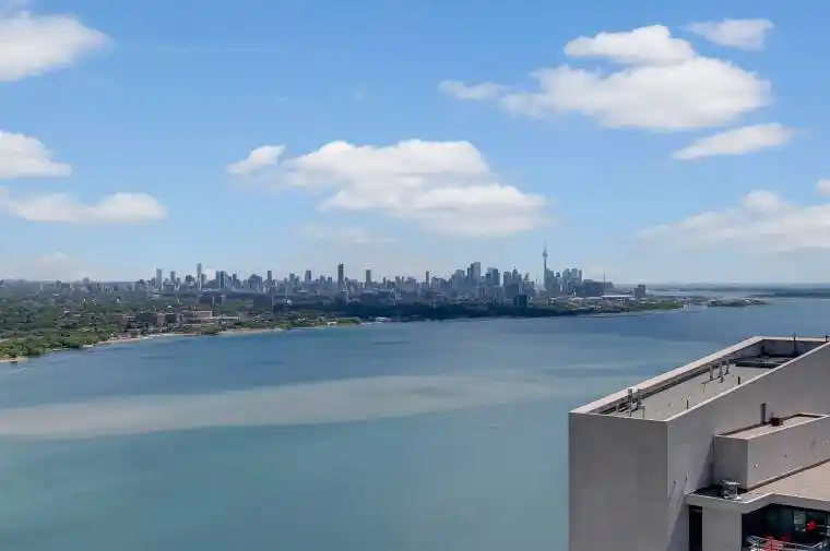 Outstanding investment and lifestyle opportunity at Vita on the Lake, an elegant waterfront residence in the heart of Humber Bay Shores. This bright and modern 1 Bedroom + Den, 2 Bathroom suite on the 46th floor showcases spectacular, unobstructed views of Lake Ontario and the Toronto skyline. With no rent control, it offers a great chance for investors to maximize rental potential, while owners will appreciate the thoughtfully designed layout featuring 9-foot ceilings, wide-plank flooring, quartz countertops, stainless steel appliances, and a spacious balcony that extends the living space. The 56-storey building provides top-tier amenities including a fitness centre, yoga studio, sauna, outdoor saltwater pool, rooftop BBQ terrace, guest suites, secure underground parking, pet wash station, and 24-hour concierge. Perfectly positioned near waterfront trails, parks, cafes, and transit, this suite combines the best of nature and city livingideal for investors, professionals, or downsizers seeking modern luxury by the lake.