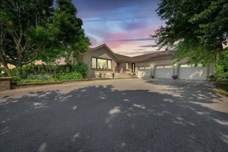 Welcome to 27900 Thorah Sideroad, your own 103-acre country retreat surrounded by rolling hills, spring-fed streams, and unspoiled natural beauty just minutes from Lake Simcoe and Beaverton Harbour. Behind the iron gates, a winding driveway leads to a striking custom-built raised bungalow (2013) offering nearly 4,000 sq ft of finished living space with a 3-car garage and beautifully landscaped grounds. Designed to capture panoramic views through oversized windows, the home blends luxury and comfort with heated floors in all three bathrooms, a chefs kitchen with a walk-in pantry and premium appliances, and a cozy wood-burning fireplace. The walk-out lower level is perfect for entertaining with a custom bar, library, and direct access to outdoor firepit and patio areas. A 40×50 steel-clad barn provides endless versatility for hobby farming, storage, or recreation. With two driveway entrances, serene privacy, and proximity to town, the GO Bus, marina, and amenities, this rare property offers the perfect balance of nature, function, and refined country living.