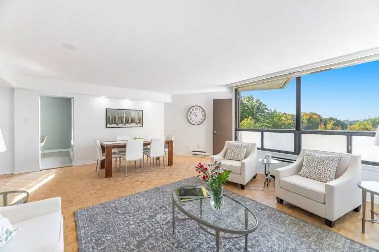 This beautifully updated & spacious Suite has over 1,500 sqft with 3 bedrooms, 3 baths, Eat – in Kitchen with quartz counters with Stainless Steel appliances, plenty of counter & cupboard space. Recently restored natural – colour Hardwood floors thru-out all main rooms. Enjoy beautiful golf course & sunset views from large west facing terrace, Living Rm, Eat – in – Kitchen, Master & 2nd Bedroom. The exclusive Masters offers resort – like amenities on 11 acres of professional landscaped grounds! Terrace overlooks Zen Garden & golf course. Primary bedroom has Ensuite Bath & walk-in Closet c/w closet organizer. BBQ’s are allowed on Terraces. Ensuite Locker. Amazing amenities are highlighted by indoor & outdoor saltwater pools, outdoor patios, Tennis Courts & Exercise facilities, Party Room. The Master’s is a real community with Fitness Classes, Pickleball League & Card Clubs & much more. Steps to bus stop & short hop to subway & GO. Loads of parks, greenspace, biking & walking trails.