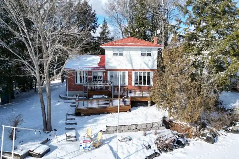 ROUND LAKE – Discover this beautifully-kept, four-season lake house on the serene north shore of Round Lake. Boasting 115 feet of incredible southern exposure, enjoy expansive, breathtaking views across the lake. This charming retreat features 3+1 bedrooms and 2 baths, providing ample space for family and guests. The well-appointed eat-in kitchen, dining room, and living room with a wood fireplace insert create a cozy and inviting atmosphere. Convenience is key with main floor laundry and a whole home automatic generator. The property also includes a detached single-car garage for added storage or parking. Perfect for year-round living or as a weekend getaway, the lake house invites you to unwind and make memories. Take a leap into the clear waters from your private dock and experience the beauty and tranquility of lakeside living at its finest. Just 15 minute from Havelock, 40 minutes northeast of Peterborough and 2 hours from the GTA. **EXTRAS** Generac Whole Home Generator (Willing to sell: Dining Room Set (Seats 10), Master Bedroom Suite) Road Maintenance with Snow Removal: $400/yearly. ISP is Rural Lynx. Small portion of land on north side of Fire Route that’s great for storage!