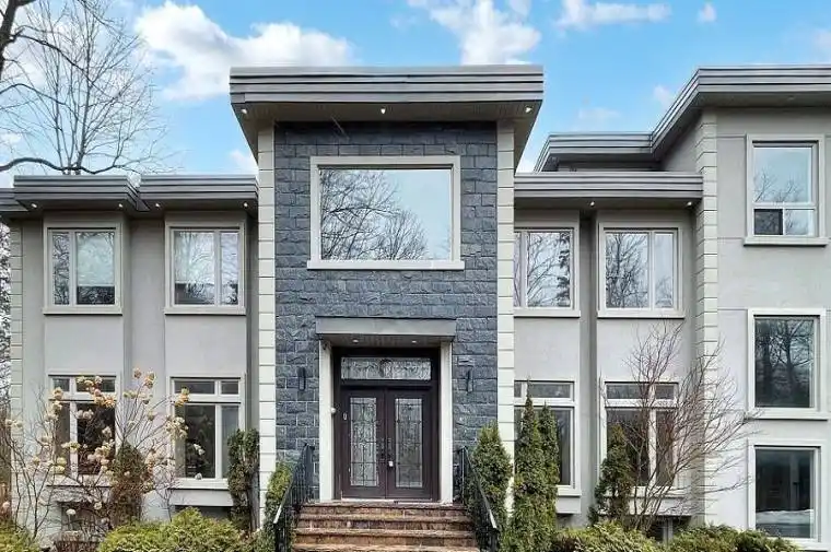 A Golden Opportunity Knocks! Welcome to this Exquisite Contemporary Custom Estate Home, privately nestled on just under 5 acres with 319 of frontage, surrounded by mature trees and backing onto the Serene York Regional Forest. Offering over 7,000 sq. ft. of luxury living plus an additional 2,000+ sq. ft. finished walk-out basement, this home delivers an unparalleled lifestyle in a tranquil forested setting. The striking exterior boasts a stucco & stone façade, 4-car garage, electronic gate, and a circular driveway. Inside, you’ll find soaring ceilings on all levels, hardwood floors, waffle ceilings, floating hardwood stairs with wrought iron pickets, and floor-to-ceiling picture windows that flood the living and dining rooms with natural light. The gourmet chefs kitchen is a showpiece with a custom waterfall centre island, upgraded cabinetry, and premium stainless steel appliances perfect for hosting family gatherings and grand celebrations. All 5 oversized bedrooms feature private renovated ensuites. The primary suite offers a boutique-inspired walk-in closet with centre island, and a spa-like 5-pc ensuite with freestanding tub, glass shower, and dual vanities. The professionally finished walk-out basement is ideal for entertaining, complete with floor-to-ceiling windows, a custom-built wet bar, expansive recreation space, and 2 guest suites. Outdoors, enjoy your private garden oasis on a 677 deep lot, complete with a workshop and garden shed. This is truly a rare, one-of-a-kind estate that seamlessly blends modern elegance with peaceful natural surroundings. Don’t miss your chance to own this extraordinary gem! Note: The subject is virtually staged.