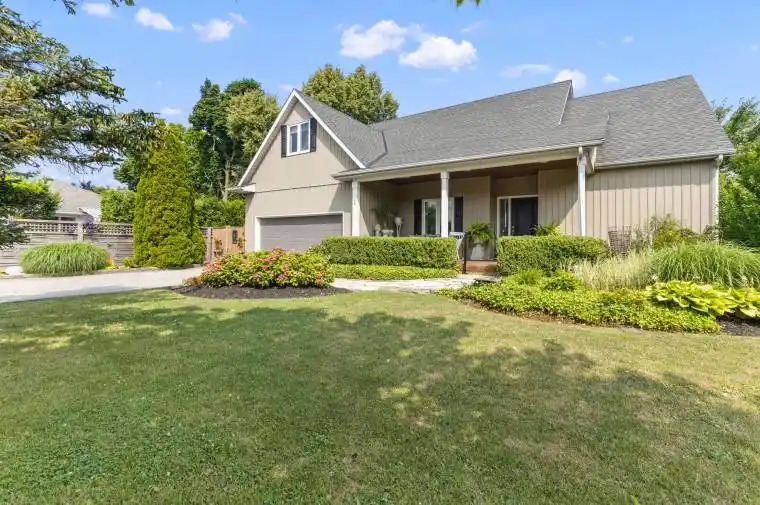 Step into the heart of Niagara living with this grand 1.5-storey residence offering over 2,500 square feet of beautifully designed living space. Perfectly situated just minutes from Old Town, the lake, local wineries, and a short walk to the library and community centre, this home captures the essence of a refined and active lifestyle. An open-concept main floor sets the tone for elegant entertaining, featuring soaring vaulted ceilings, a spacious living room, and a bright, welcoming kitchen that opens onto a covered deckideal for outdoor dining and gatherings. The main-floor primary suite offers convenience and privacy with a walkout to the backyard. Each of the four bedrooms has its own private en suite, providing comfort and privacy for family and guests. A separate, self-contained in-law suite with its own entrance offers flexibility for extended family or visiting guests. Set on a deep 180-foot lot, the backyard is a private retreat with a beautiful inground pool and plenty of space to entertain or unwind. Whether hosting summer evenings under the stars or enjoying quiet mornings by the water, this home invites you to fully embrace the Niagara-on-the-Lake lifestyle.