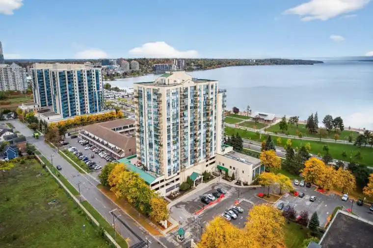 Welcome to Marina Bay! Soak in stunning south-facing views of Kempenfelt Bay from this beautifully updated 2-bedroom, 2-bath condo at Marina Bay Condos. Bright and spacious, this suite features a partially open kitchen with a breakfast bar overlooking the living area, Brazilian Cherry hardwood and marble flooring, remote-activated blinds, and a modern kitchen with sleek new appliances. The primary bedroom features a walk-in closet and full ensuite, while the second bedroom is perfect for guests, family, or a home office. Step out onto the private balcony to enjoy sunshine, lake breezes, and serene views. Experience resort-style living with an indoor pool, fully equipped gym, sauna, and landscaped common areas — all just steps from Barrie’s waterfront, beaches, parks, trails, and downtown dining. With easy access to shopping, cultural venues, and transit, this condo combines convenience, comfort, and the ultimate waterfront lifestyle. Lifestyle, comfort, and lake views — all in one perfect package!