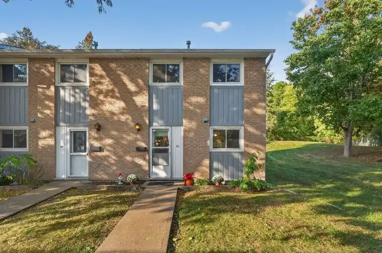 New improved price!!Welcome to 25-206 Green Valley!! A very desirable end unit townhome with lots of appeal for first time owners and downsizers alike.This 3-bedroom, 2.5-bathroom home features a finished basement and is move-in ready. The entry area includes ample closet space and a powder room. The kitchen has newer countertops, sink, and faucet, and it leads into a dining area with plenty of storage. There’s a spacious living room with direct access to a PRIVATE backyard that overlooks the green space.Upstairs, you’ll find a large primary bedroom with big windows, a clean 4-piece bath, and a sizable linen closet. Two additional bedrooms with good closet space complete the upper level.The basement includes an extra 3-piece bath, laundry area, additional storage, and a large rec room and it has a newer a/c unit!The backyard offers a peaceful environment surrounded by trees.
