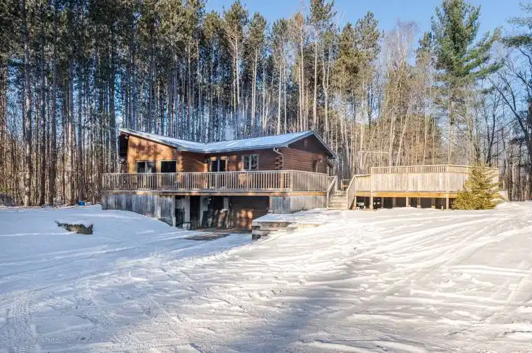 Absolutely stunning log home nestled on a spacious lot, a perfect woodland setting for your next chapter! This home is on a private 2 acre lot, and even has to potential for a severance. Wooded area and open space is balanced beautifully around this raised bungalow to create gorgeous views and maintaining ample sunshine. Minutes from Stoco Lake and a public boat launch this could be the sanctuary of your dreams! Year-round waterfront enjoyment without the premium of lakefront taxes! Boating, fishing and swimming are all a stones throw from this home! Three comfortable bedrooms, one and 1/2 bathrooms, this place captures the rustic wood theme with all the modern conveniences and a pool for those incredibly hot summer days. Included with all of this is the added luxury of a separate entrance to the finished rec room area, where your imagination is the only thing holding you back from creating your own space or in law suite! Possibilities are truly endless. Large 16’x12′ workshop will satisfy all the hobby work enthusiasts, complete with concrete slab flooring. Many decks surround most of this home, so the only real question is where to drink your morning coffee or sip your evening beverage! This amazing property represents a unique opportunity to own your own woodland paradise, have waterfront benefits without the price tag as well as be within quick reach of the 401 or Belleville (39km away) your personal tour awaits!