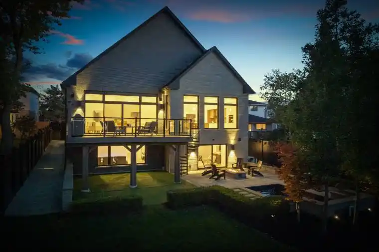 Welcome to an extraordinary custom-built estate offering over 4,000 square feet of luxurious living space on a meticulously landscaped 1.35-acre lot. Originally built in 2018 and enhanced with hundreds of thousands in recent high-end renovations, this home is a flawless blend of sophistication, comfort, and modern design. From the moment you arrive, you’ll be captivated by the grand covered porch, new fluted glass entryway, and stunning curb appeal. Inside, soaring vaulted and coffered ceilings, detailed crown moulding, and expansive floor-to-ceiling windows fill the home with light and elegance. The main floor showcases a modern luxury kitchen complete with a massive center island, wall oven, cooktop, pot filler, and coffee bar, all overlooking the serene, private backyard and greenspace beyond. The open-concept living area features a gas fireplace surrounded by custom built-ins and integrated speakers, perfect for entertaining or relaxing. Two main-floor primary sites each offer walk-in closets and spa-like en-suites, with the main primary featuring built-in cabinetry, a lavish dressing room, and a magazine-worthy 5-piece ensuite with heated floors and a built-in speaker system. The windows, a four-piece bathroom with heated floors, a theatre room with surround sound and entertainment zones with beautifully landscaped patio featuring a built-in gas fireplace and heated spa pool with waterfall, a putting green, and a grass area enclosed by a high-quality vinyl fence (+/-$70K). Beyond the fenced area is an extra-wide green space with forest. Additional highlights include a luxury laundry/mudroom with quartz counters and custom cabinetry, indoor/outdoor speakers, 200-amp electrical, HRV humidifier, security system with cameras, and a tankless water heater. Conveniently located near all amenities and highways with easy access to Toronto and the airport, this exceptional property offers the perfect balance of luxury, privacy, and convenience.