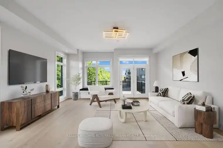 **INCLUDES INCOME GENERATING TWO STOREY BASEMENT APARTMENT ** The Designers Own Dream Home in Patterson. Set on a rare 33′ ravine lot with a walk-out basement and an extra-wide 21 interior, this end-unit townhome is unlike anything else in Patterson. The two-storey basement apartment, complete with laundry, offers versatility perfect for multi-generational living or as a rental suite generating approximately $2,700/month. Envisioned by a renowned interior designer, every detail has been thoughtfully curated to surpass model home standards. Step inside to soaring 10 ceilings on the main floor and 9 on the second, smooth ceilings throughout, and rich 5″ hardwood paired with 7″ modern baseboards and shaker doors. The kitchen is a true showpiece, anchored by a 10′ island with dual waterfall edges, quartz counters, walk-in pantry, under-cabinet lighting, and a window seat that captures ravine views.The primary suite offers a retreat-like feel with a custom walk-in closet and spa ensuite featuring a standalone tub, quartz niches, sleek skirted one-piece toilets, and upgraded fixtures. Outdoors, professional landscaping, interlock walkways, private side patio with backyard access, extended deck, multiple patios, and vinyl fencing create a private oasis. Added conveniences include dual laundry rooms, CAT5 wiring, BBQ gas line, and extra parking.This is more than a home it’s a statement of style, function, and luxury living. *Note photos are virtually staged.