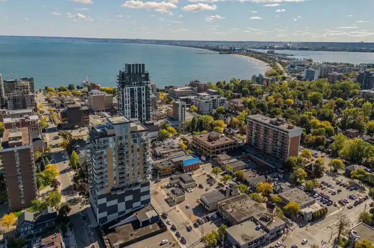 Experience peak urban living in this rare, contemporary corner suite in the prestigious Berkeley Condos, perfectly positioned in the heart of downtown. Steps from Burlington’s vibrant waterfront, premier dining, boutique shopping, cultural events, and everyday conveniences, this residence offers the ultimate lifestyle experience for those who value luxury and location. This spectacular South-East facing corner suite boasts a stunning open-concept design highlighted by floor-to-ceiling, wall-to-wall windows, soaring 9′ ceilings, and direct lake and escarpment views. Hardwood floors flow throughout the expansive living and dining areas, seamlessly extending to a remarkable 200 sq ft wraparound balcony-ideal for morning coffee, evening cocktails, or simply soaking in the panoramic vistas. The chef-inspired kitchen is an entertainer’s dream, featuring an 8′ quartz island with breakfast bar, sleek built-in stainless steel appliances, tile backsplash, range hood, and a dedicated coffee bar. The serene primary retreat offers a walk-in closet and spa-like 4pc ensuite with oversized vanity, luxurious soaker tub, and glass walk-in shower. An additional spacious bedroom and modern 3pc bathroom provide versatility for guests or a private office. In-suite laundry, two parking spaces, and two storage lockers-including one super locker-add exceptional convenience. The Berkeley lifestyle is second to none, offering 24-hour concierge, a fully equipped fitness centre, two guest suites, party and games room, and an impressive rooftop terrace with breathtaking views. A true must-see-this is downtown luxury living at its finest.