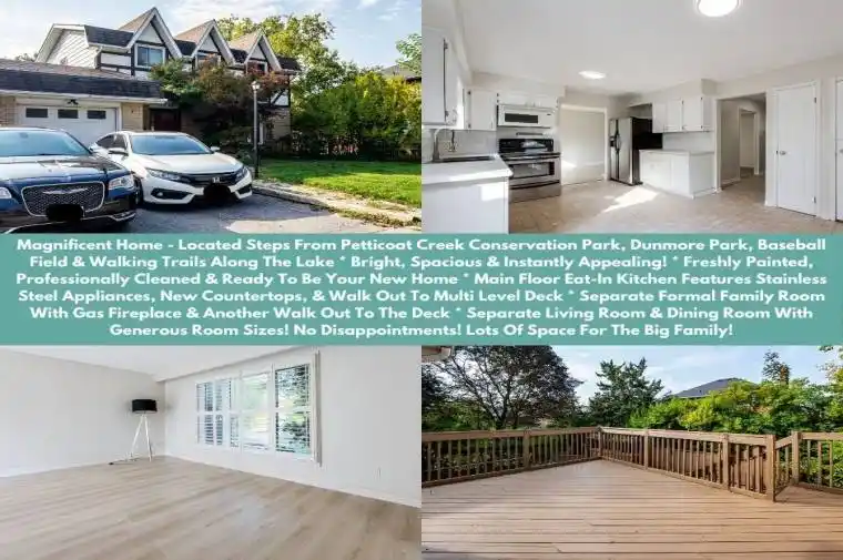 Magnificent Home – Located Steps From Petticoat Creek Conservation Park, Dunmore Park, Baseball Field & Walking Trails Along The Lake * Welcome Home! This Bright, Spacious Residence Offers The Perfect Blend Of Comfort And Convenience. Recently Refreshed With Fresh Paint And Professional Cleaning, It’s Ready For Immediate Occupancy.The Main Floor Features An Eat-In Kitchen With Stainless Steel Appliances And New Countertops Opening To A Multi-Level Deck. A Formal Family Room With Hardwood Flooring And Gas Fireplace Completes The Entertaining Space. The Separate Living And Dining Rooms Offer Generous Proportions With Beautiful Front-Yard Views.Three Spacious Bedrooms Include A Primary With 3-Piece Ensuite And Walk-In Closet. Two Full Bathrooms Service The Second Floor. A Private Laundry Room On The Main Floor Adds Exceptional Convenience.The Crown Jewel Is The Inground Pool-Your Own Private Backyard Oasis Perfect For Summer Entertaining And Relaxation.Located Within Walking Distance To Dunmore Park, Baseball Fields, Scenic Trails, And Fairport Beach P.S. Minutes To Pickering Town Centre, Restaurants, Groceries, And Major Transit Routes (401, 407).Tenant Responsible For Snow Removal, Grass Cutting, And Pool Maintenance. 1 Garage + 1 Driveway Spot. Basement Not Included.