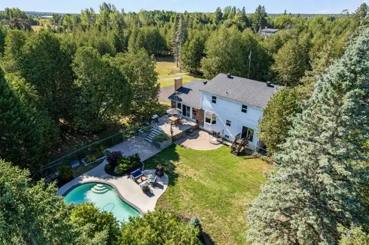 Tucked away on 24 acres of privacy and natural beauty, this country property offers space to spread out, breathe deep, and live comfortably, all just a short drive from town. The classic two-storey home blends traditional character with smart, modern updates. Recent improvements include new flooring and windows, a fully renovated primary ensuite, refreshed main and second-floor bathrooms, a refinished in-ground pool, new electric furnace with heat pump, and fresh interior paint throughout. An auto-transfer generator keeps essential systems running during outages so you’re ready for anything. Inside, the layout is built for family life. The main floor features separate living and dining rooms, plus a large family room that flows off the kitchen and breakfast nook. Its perfect for everyday living and entertaining. Upstairs offers four bedrooms and two and a half baths. The basement adds a spacious rec room, office or gym, full bath ready for completion, and plenty of storage. Step outside and it gets even better. Spend your mornings with coffee on the back deck, your afternoons in the pool, and your evenings hosting friends under the stars. A two-car attached garage handles the day-to-day, while a separate one-car garage or barn opens up new possibilities. It includes a single-stall paddock ideal for a horse or hobby farm animals, a chicken coop, and a drive shed. Explore rough-cut trails through forest and wetlands. where nature surrounds you in every season. 1390 Corkery Rd is a private, peaceful haven with room to grow, roam, and recharge.