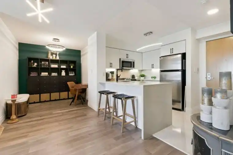 Enter a realm of modern luxury in this 1-bed + den, 1-bath condo, a 638 sq. ft haven of style that’s in turnkey move-in condition. Experience the airy, open-concept living space, with thoughtful upgrades to lighting that create a spa-like feel for your end-of-day relaxation, floor-to-ceiling windows, and unobstructed views. The open concept floor plan features $30,000 in recent upgrades (2025) to kitchen with stainless steel appliances, foyer, bathroom cabinets, shower, vanity, ceramic tiles, custom closet in bedroom, and shelving in den for ample storage. This above-average well-maintained home shows pride-of-ownership and has been freshly painted. The sleek accent wall with custom shelving adds a final touch of modern to the versatile den, large enough to fit a bed, home office or children’s play area. Building Amenities include guest suites, gym/exercise room, indoor pool, media room, party/meeting room, visitor parking and 24/7 concierge. Local amenities include Scarborough Town Centre, TTC and GO Transit access, Cineplex theatre, Wal-Mart, restaurants, Metro Golf Sportsplex, restaurants, and excellent schools. Come check out this beautiful unit. You will not be disappointed! Parking and locker included.