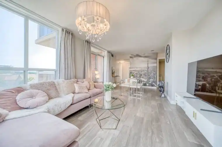 Rarely Offered 2-Bedroom plus huge den Designer-Renovated Corner Unit Move-In Ready! Welcome to this spacious and beautifully renovated 1179 sq ft northeast corner suite, offering a peaceful view of quiet inner streets. Professionally designed and upgraded with nearly $100K in renovations! Enjoy a bright and open floor plan with new laminate flooring throughout, modern finishes, and thoughtful details! Located in a quiet yet ultra-convenient location, just steps from Highway 7 amenities including shops, supermarkets, VIVA transit, and more. The highly anticipated T&T Supermarket is set to open right next door, adding even more convenience to your daily life. Only 5 minutes to Langstaff GO Station, and a short drive to Highway 404central to everything Markham has to offer. This well-managed building features a strong sense of community and pride of ownership. The unit includes two side-by-side parking spaces and a locker for added storage. Ideal for both upsizers and downsizers looking for space, comfort, and style. Extras: 5 appliances, all window coverings, and light fixtures included.