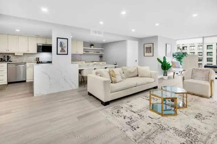 Welcome to The Wellington, a beautifully renovated condo offering modern luxury and urban convenience in Toronto’s St. Lawrence Market neighborhood. This elegant residence combines functionality with high-end finishes and a light-filled, open-concept layout. The spacious living area, designed for both relaxation and entertaining, features a custom display wall with built-in lighting for art and a sleek, floor-to-ceiling storage unit. The gourmet kitchen, crafted for the home chef, offers generous counter space, premium cabinetry, and top-tier appliances, with a custom seating area that flows seamlessly into the main living space. The primary bedroom is a tranquil retreat with a walk-in closet and custom organizers for efficient storage. The spa-inspired bathroom showcases refined fixtures and a modern vanity, while the second bedroom serves as a versatile guest room or home office with access to a similarly designed bath. Residents enjoy an exceptional lifestyle with Bell Gigabit Fibe 1.5 Internet ($77/mo value) and Bell Fibe TV with Crave, Starz & Timeshift ($142/mo value) included. Building amenities include a heated indoor pool, hot tub, fitness centre, basketball court, party room, and 24-hour concierge, ensuring both comfort and convenience. 30 Wellington is also recognized as part of a Naturally Occurring Retirement Community, a welcoming environment with a strong sense of community and a vibrant population of long-term and retired residents who value connection and walkable urban living. Ideally located steps from the St. Lawrence Market, this residence is close to the Financial District, Union Station, Berczy Park’s iconic fountain, and Toronto’s finest dining and cultural landmarks, the perfect blend of luxury, comfort, and accessibility in one of the city’s most desirable neighborhoods. More than just a home, this condo offers a refined urban lifestyle, where every detail has been thoughtfully curated to create a warm, stylish, and functional living space.