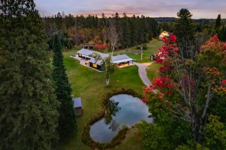 “The Winding Rivers Estate” has it all, privacy, location and acreage. This one of a kind state of the art Contemporary Home is a lifestyle retreat sitting on nearly 100 acres, this extraordinary property offers the perfect blend of peaceful living, recreational opportunities, and income potential. The land features open, treed and cleared productive farmland, and is surrounded by managed forest. A gated private drive crosses a bridge over Matheson Creek, winds past a spring-fed pond, and leads to over 3000 sq ft of luxury living space bordering Willow Creek. Sunlight pours into every inch of the home through the expansive windows and doors designed to frame the fabulous outdoor views. The amazing chef’s kitchen comes complete with Sub Zero/Wolf and Viking stainless steel high end appliances a huge island and rustic high end finishes. The radiant in-floor heating, rustic wood beams, multiple fireplaces and custom touches throughout blend style with timeless looks. The 36×48 ft. two level hip-roof barn with space for 7 large stalls, has a free-span loft, concrete floor, hydro and water. The paddocks, run-in shed, and riding ring invites possibilities from equestrian pursuits to creative projects. Explore the large network of private trails weaving through the creeks and streams throughout the entire property; ideal for ATV or horseback riding, hiking or cross country skiing. A 24×60 ft greenhouse makes it easy for the avid gardener to spend hours cultivating their own indoor gardens. The gardens, wood and pump houses, plus wood and propane boilers, offer self-sufficiency in this agricultural zoned estate with a rare blend of natural beauty, long-term value, and exceptional privacy. Whether you’re seeking a family retreat, hobby farm or simply space to breathe this is a property that delivers. Just 10 mins to Barrie, 15 to Horseshoe Valley and Vetta spa, golfing, skiing, and major highways, just imagine the endless possibilities that await in this remarkable estate.
