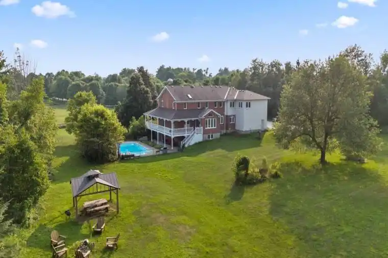 Welcome to 14141 Dublin Line, Where Luxury Meets Lifestyle of 6119 sq ft of total living space on 9.46 Acres of Pure Country Perfection. If you’re searching for tranquility, privacy, natural beauty, and luxury wrapped into one incredible estate this is the one! Set on over 9.4 pristine acres of manicured countryside, this show stopping estate offers glorious panoramic views, rolling hills, and a sense of peace thats nearly impossible to find all just 5 minutes to the GO Train, 15 to the 401/407, and a short drive into town. It’s your private retreat, perfectly connected. Fully gutted in 2023 and renovated top to bottom by 2024 with no expense spared. This home is a masterclass in design and comfort. From rich hardwood floors to porcelain tile, granite countertops, and luxury finishes throughout everything feels intentional, elevated, and built to impress. From the moment you enter, youre greeted with jaw-dropping views of the rolling landscape and an open layout thats made for hosting. The main level features a crisp white chefs kitchen, oversized living, dining, and family rooms, and a floor plan that balances elegance with everyday functionality. Upstairs? Youll find 5 spacious bedrooms, including TWO primary suites one with three walk-in closets and a spa-like 5-piece ensuite, the other overlooking the pool and hot tub with its own luxe bath. Four out of the five bedrooms have their own ensuites perfect for large families or guests. The walkout basement is bright, open, and built for entertaining. Think: movie nights, game days, slumber parties this space does it all and more. Outside, the amenities continue:Set back from a tree-lined road for maximum privacy, Fully fenced yard with plenty of space to roam, 18×36 in-ground pool + hot tub, Horse paddock, Detached shed, And views that belong on a postcard. This isn’t just a home its a lifestyle upgrade!!. Whether you’re raising a family, hosting unforgettable events, or just craving space and serenity.