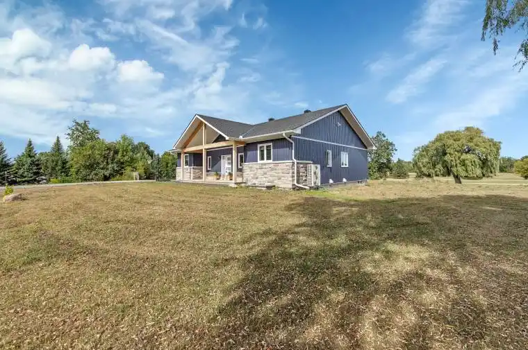 Welcome to 4645 McNeely Road a stunning 2023-built bungalow set on nearly 1.3 acres, backing onto the picturesque Bearbrook Golf Course. Tarion builder TSH Homes proudly crafted this quality-built custom home with Zip System R-Sheathing, ensuring enhanced durability and energy efficiency. This rare offering features four bedrooms on the main level, designed with both family living and modern elegance in mind. The private primary suite is thoughtfully tucked away, complete with a sunlit walk-in closet, a spa-inspired ensuite, and walkout access to a covered deck overlooking the fairway. A versatile den provides the perfect space for working from home. At the heart of the home, the chefs kitchen and great room impress with quartz countertops, a built-in wall oven, wine fridge, pot filler, and rich hand-scraped hickory hardwood floors an inviting space for gatherings and entertaining. Three additional bedrooms and a beautifully appointed main bath with designer finishes complete the main floor. The lower level, with 9-foot ceilings and a rough-in for a full apartment, offers incredible flexibility ideal for an in-law suite or income potential. With a septic system sized to accommodate both a one-bedroom apartment and a two-bedroom coach house, the property is perfectly suited for multigenerational living or future expansion. Additional highlights include a Generac outdoor gas generator for year-round peace of mind. Blending luxury, comfort, and endless possibilities, this home is truly one of a kind. 24hr Irrevocable