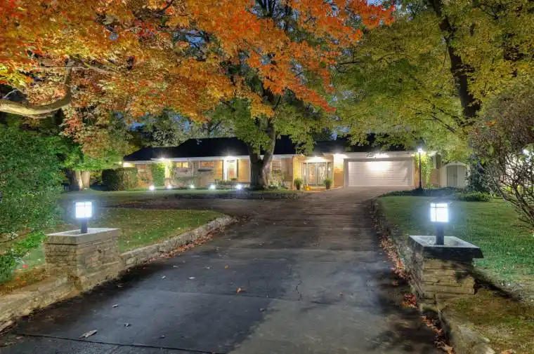 On a secluded .40-acre lot, this stylish bungalow captures modern living without compromising its mid-century charm. Professionally landscaped the property feels like a private country retreat in the heart of the city. The outdoor space is designed for entertaining, with newer fencing, a three-tier deck, and two expansive granite patios. From the landscape lighting to the gas line for the BBQ, every detail has been carefully considered. The grand foyer showcases a coffered ceiling and provides easy access to both the garage and the yard. Quality is evident throughout the bright home, with gas fireplaces, smart-lighting, stone and hardwood flooring, crown moldings, and California shutters. The upgraded kitchen boasts tumbled marble, classic white cabinetry, stainless steel appliances, and a built-in bar-height peninsula. The dining area features a dry bar with matching stone countertops and built-ins. The primary suite is complete with a gas fireplace, a walkout to the 12 x 12 composite deck, dual closets, and a spa-inspired ensuite. This 5 piece bathroom hosts the fully customized walk-in closet, a large glass shower, a standalone soaker tub, and an exposed angel stone wall. A second bedroom and a guest powder room complete the upper level. The walkout basement offers over 900 square feet of beautifully finished living space, including large windows, a gas fireplace, a full bathroom, and a contemporary kitchenette, ideal for extended family. The home is protected by a security system and a newer steel roof with a 50-year warranty. The heated and insulated oversized double garage with workshop space is a dream for hobbyists. This property lets you live as if you’ve already escaped the city, without ever leaving the comfort of your own home.