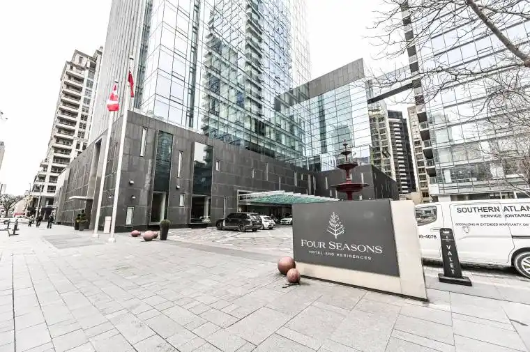 Sun-filled, South-East facing executive suite in the heart of Yorkville, offering unobstructed city views. This rare 2,466 sq.ft. residence in the prestigious Four Seasons West Tower features two bedrooms plus a den and showcases refined contemporary design throughout. The spacious open-concept layout is highlighted by a modern kitchen with top-of-the-line built-in appliances and a walk-out to a private 12′ x 12′ terrace. The primary bedroom offers a spa-like ensuite and two generous walk-in closets. Enjoy unmatched luxury and privacy with direct private elevator access, soaring ceilings, a cozy fireplace, and magnificent floor-to-ceiling windows that frame breathtaking views. Steps to transit, world-class shopping, fine dining, and the library-this one-of-a-kind home defines sophisticated urban living.