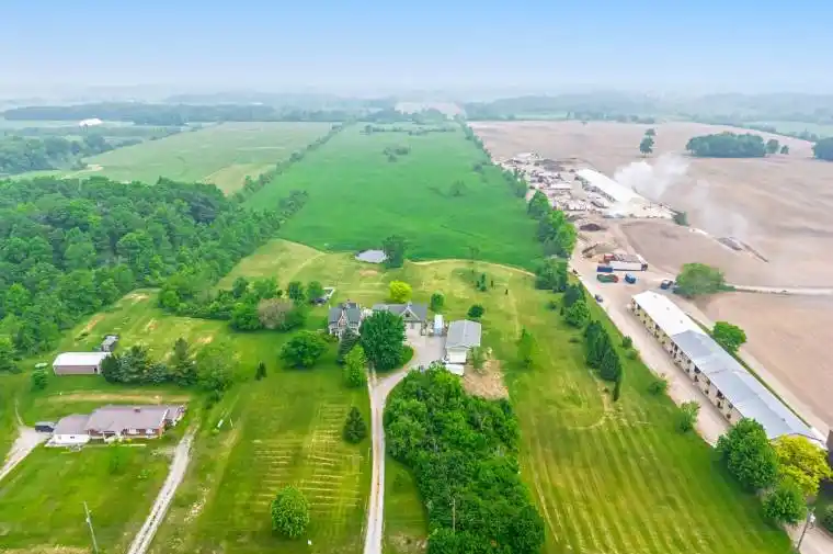 Nestled on a picturesque 46.5-acre property, this breathtaking century home seamlessly blends historic charm with modern conveniences. Spanning approximately 2,600 sq. ft., this bright and inviting home is filled with natural light, highlighting its many original features, including a stunning handcrafted staircase, wide plank hardwood floors, intricate trim work, 2 gas fireplaces, and beautiful stained glass windows. The thoughtfully designed layout offers 3 spacious bedrooms, including one with a private balcony overlooking the scenic landscape. A second-floor laundry and home office provide convenience, while the elegant 5-piece bathroom adds a touch of luxury. Enjoy the beauty of the outdoors from any of the three covered porches, with the back porch offering serene views of the pond and vegetable garden. For those who appreciate additional space, this property offers a two-story 3-car detached garage with a loft apartment featuring two bedrooms and a rough-in for a three-piece bath, ready to be completed as an in-law suite. Additionally, a 60×30 detached garage provides ample room for storage, a workshop, or hobby space. Completing the outdoor amenities is a covered dining and BBQ area, perfect for entertaining and enjoying the scenic surroundings. Previously used for farming wheat, the expansive land offers endless possibilities. Located in the heart of the Niagara Region, you’re just minutes from local markets, scenic hiking and biking trails, world-class wineries, breweries, golf courses, and top-tier dining. Plus, with easy access to the QEW, commuting is a breeze. This rare and remarkable property is a must-see don’t miss your chance to own a piece of history in an unbeatable location!